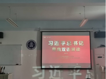 在第一环节,朱书记带领同学们观看了习近平总书记用典双语解读第5讲《唤起工农千百万,同心干》和第6讲《国以民为本,社稷亦为民而立》,随后,朱书记就相关内容进行讲解并着重教同学们如何更好地朗读。最后,朱书记邀请数名同学就上述两讲内容进行模仿练习,指导同学们的语调与发音。