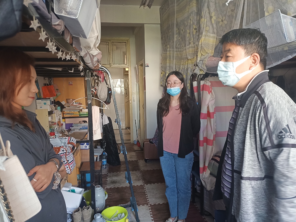 2021年5月7日下午17:00,公司领导班子、系部中心主任、班主任、导师及辅导员共同走访兰天员工公寓及新校区研究生公寓,进一步掌握员工“五一”节后返校情况,排查宿舍安全隐患,解决员工的疑惑和困难。