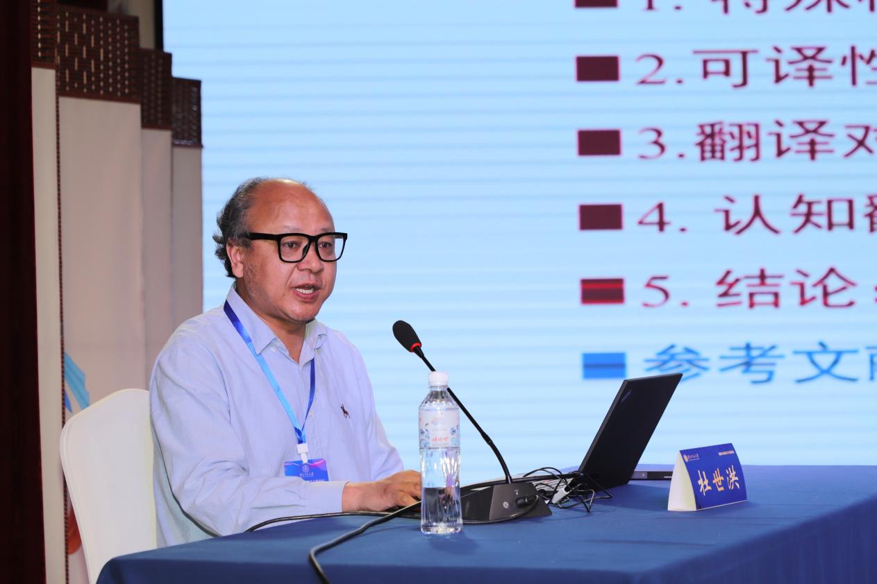 第五和第六场报告由西南大学胡显耀教授主持。西南大学杜世洪教授在以“认知翻译学的本体论信守”为题的报告中,重点阐释了何为认知翻译学的本体论信守以及它对翻译核心问题具有何种指导作用,进一步深化了对翻译对等问题的理解。华南农业大学李占喜教授报告的题目为“英语成语汉译产出认知过程研究:眼动-击键方法”。他以“翻译课堂教学的关联-顺应研究路向”为理论视角,运用眼动追踪和击键记录实验方法,探讨了硕士生译者汉译英语成语的认知产出过程。