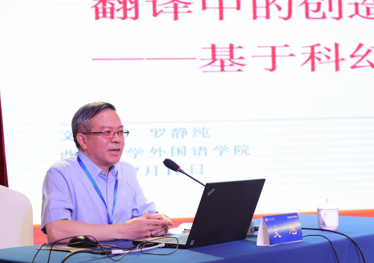 第一和第二场主旨报告由西南大学肖开容教授主持。西南大学文旭教授的报告题目是“翻译中的创造性认知过程——基于科幻新词的实证研究”。他指出,不同形式的科幻新词对应译者不同程度的认知努力和创造空间,可表示为一个创造性认知过程模型。华侨大学/中国人民大学王建华教授聚焦“认知翻译学与中华文化国际传播”,构建了中华文化国际传播的认知翻译学模型,并选取代表性案例分析其实践路径,进一步验证了认知翻译模型的实践指导作用。