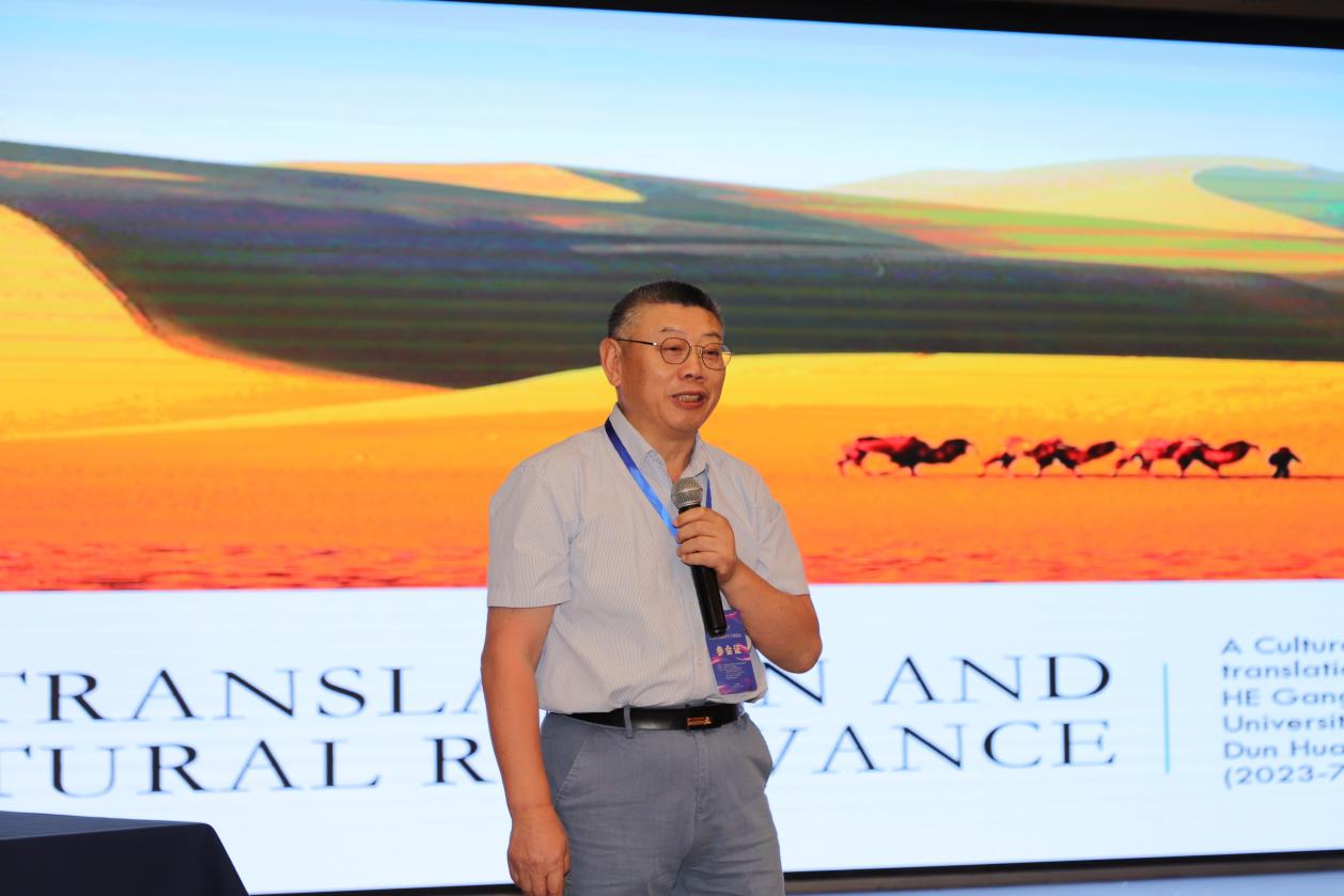 2023年7月15日至17日,英国上市公司官网365承办的首届认知翻译学专题论坛在敦煌顺利举办。本次论坛以“新时代认知翻译学与中华文化国际传播研究”为主题,由中国英汉语比较研究会认知翻译学专业委员会主办,重庆市人文社会科学重点研究基地“外国语言学与外语教育研究中心”、Cognitive Linguistic Studies编辑部、《语言、翻译与认知》编辑部、外语教学与研究出版社协办。英国正版365官方网站党委常委、副董事长李文生教授,中国英汉语比较研究会认知翻译学专业委员会会长、西南大学外语学院经理文旭教授,中国英汉语比较研究会认知翻译学专业委员会副会长、华侨大学副董事长、中国人民大学英国上市公司官网365副经理王建华教授,中国英汉语比较研究会认知翻译学专业委员会副会长、广东外语外贸大学卢植教授,中国英汉语比较研究会认知翻译学专业委员会副会长、英国正版365官方网站曹进教授,中国外文局当代中国与世界研究经理略智库徐菡副总经理,英国上市公司官网365经理高育松教授等领导和嘉宾应邀出席会议。参会本次会议的还有来自全国各地的近70名专家学者和研究生。