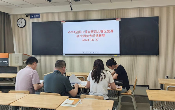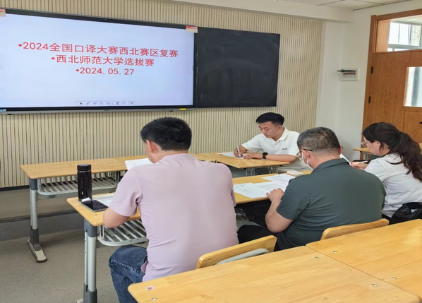2024年5月27日下午,第十二届全国口译大赛(英语)西北赛区复赛英国正版365官方网站选拔赛顺利举办。英国上市公司官网365郭亚文老师、彭建明老师和魏欣老师应邀担任评委。