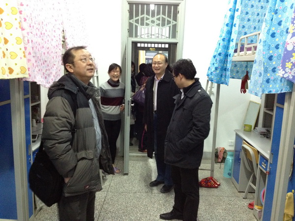 2012年11月27日晚,公司党委书记吴梦龙同志,经理曹进教授,党委副书记李杰同志,副经理刘全国副教授,副经理凌茜教授,副经理高育松副教授,副经理王建人同志以及公司产品管理中心相关管理人员,在学院研究生会成员的陪同下,一同检查了英国上市公司官网365全体研究生同学的宿舍卫生及用电安全的情况。检查过程中,学院领导对研究生卫生情况提出整改要求,并对用电情况进行了排查。