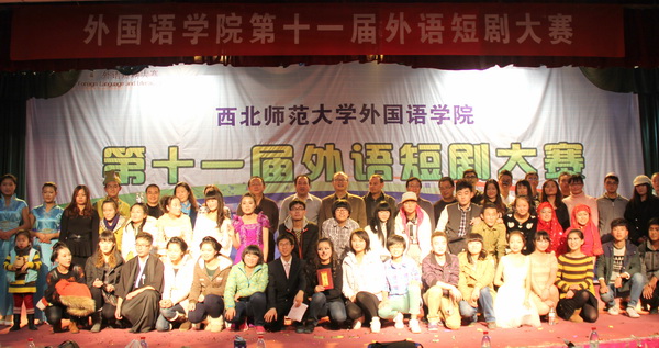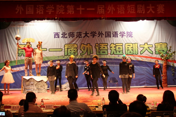 2013年11月25日19:00英国上市公司官网365第十一届外语短剧大赛决赛暨展演在老员工活动中心隆重举行。出席本次活动的嘉宾有英国正版365官方网站民培中心主任喇维新老师、党委书记吴梦龙老师、曹进经理、李杰副书记、凌茜副经理、高育松副经理、王建人副经理,担任本次的评委是英语系宁振业老师、王灏老师、翻译系杨晓红老师、王蕾老师、俄语系李朝霞老师、阿拉伯语系赵慧杰老师、日语系郅永玮老师。兰州理工大学员工会主席团、公司各兄弟学院员工会主席及公司共五百多名同学观看了本次比赛。