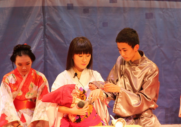 在本次大赛中,2013级阿拉伯语班的《阿里巴巴与四十大盗》 、2013级英语(3)班的《妈妈咪呀》 、2013级日语班的《雪女》分别荣获本次大赛一等奖、二等奖和三等奖以及1000元、800元、500元的奖励,《青蛙公主》等5个短剧获得了优秀奖的荣誉称号。此外,本次大赛还评选出了八位优秀演员。