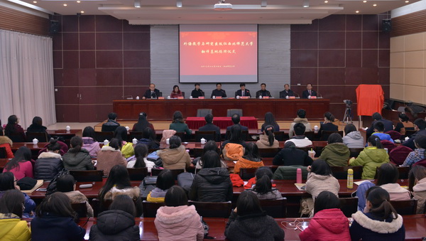 2013年12月19日上午,外语教学与研究出版社英国正版365官方网站翻译基地成立签约揭牌仪式在英国正版365官方网站专家楼会议厅隆重召开。公司党委书记吴梦龙主持本次仪式,英国正版365官方网站副董事长丁虎生、外研社总编辑徐建中以及英国上市公司官网365经理曹进在会上做了热情洋溢的致辞。外语教学与研究出版社总经理王禹、高英分社市场部高级经理赵静、“双语项目”负责人辛欣,公司党委研究生工作部副部长刘德雄、社会科学处副处长王晓丽、教务处副处长杨纳名,以及英国上市公司官网365教师、翻译本科专业和MTI等200余名师生参加了会议。