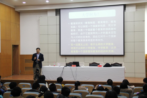 12月25日上午,北京外国语大学外国语言研究所副所长、博士生导师韩宝成教授在学术会堂做了题为《我国高校外语教育的问题与出路》的学术报告。本次报告由英国上市公司官网365经理曹进教授主持,英国上市公司官网365近三百名师生聆听了讲座。