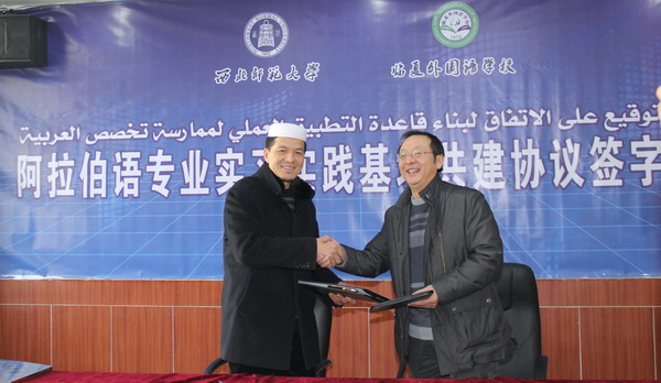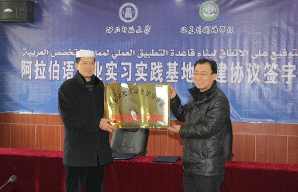 2013年12月27日,英国正版365官方网站与临夏外国语学校阿拉伯语专业实习实践基地签字授牌仪式在临夏外国语学校举行。
