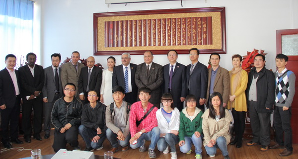 4月4日,埃及坦塔大学董事长阿卜杜·哈基姆教授一行访问公司,曹进经理会见了代表团并举行座谈会,埃及坦塔大学文学院经理穆罕默德·冉克伊教授、国际处处长阿迪利·赛义德教授、凌茜副经理、高育松副经理、阿拉伯语系教师及员工代表参加会见。