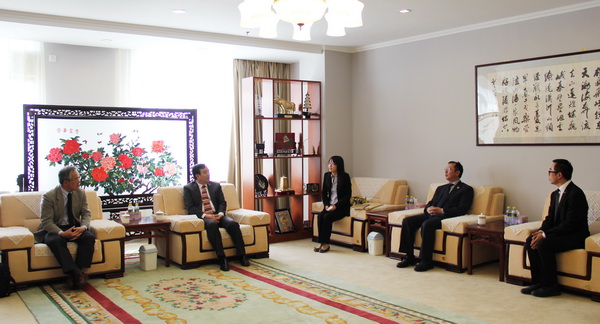 4月8日下午,甘肃省政府“敦煌奖”获得者,为我省造林事业做出突出贡献的日本秋田县县议员武田英文访问了公司。甘肃省外事办公室张宝军副主任、国际交流处朱莉莉处长,公司田澍副董事长、国际交流合作处张国奎副处长、曹进经理在学校贵宾室亲切会见了武田英文一行。