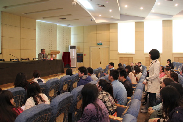 捐赠仪式结束以后,武田英文先生为日语专业员工举行了题为“重生绿色大地”的演讲,带领听众进行了一次环游世界森林之旅。演讲结束后,武田英文与员工亲切对话,勉励大家努力学习。