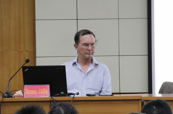 报告会上, Terence Odlin博士首先以中国和芬兰为例分析了多语环境下的各种语言接触现象,然后分析了以芬兰语为母语、英语为二语的英语学习者及以芬兰语为母语、瑞典语为二语、英语为三语的英语学习者在介词及冠词习得上的异同,具体阐释了一语对二语及二语对三语的影响。同时,Odlin博士还探讨了语言迁移中的群体共性及个体变异,从方法论上阐明了研究语言迁移对个体差异影响的必要性。讲座最后,Terence Odlin博士深入细致地解答了师生们提出的问题。
