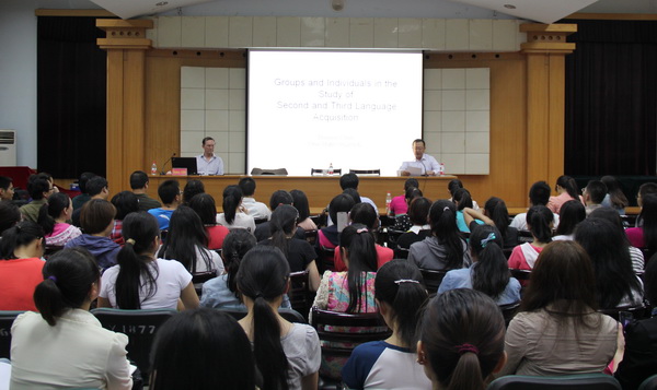 5月21日下午,美国俄亥俄州立大学英语及语言学教授Terence Odlin博士在图书馆二楼多功能报告厅做了题为“Groups and Individuals inthe Study of Second and Third Language Acquisition”的学术报告。本次报告会由英国上市公司官网365经理曹进教授主持,学院200多名师生聆听了报告。