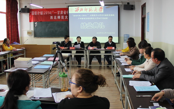 11月6日,“国培计划(2014)”甘肃中小学教师置换脱产研修项目英国正版365官方网站初中英语班结业典礼在教学3号楼605教室隆重举行。英国上市公司官网365经理、公司国培计划英语学科首席专家曹进教授,英国上市公司官网365副经理、国培计划英语学科负责人凌茜教授、副经理高育松教授、刘全国教授以及参加本次研修的50名学员和2名国培班班主任参加了结业典礼。