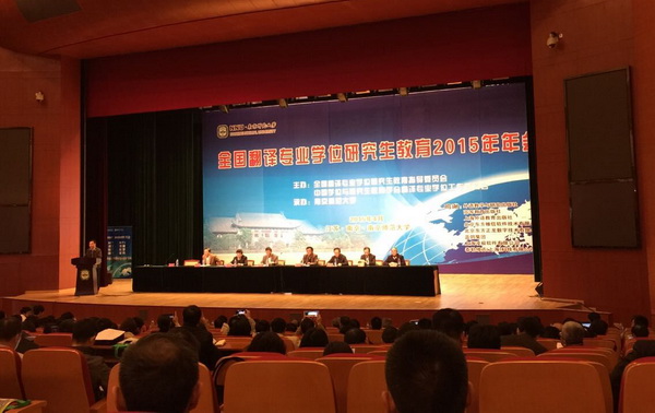 由全国翻译专业学位研究生教育指导委员会、中国学位与研究生教育学会翻译专业学位工作委员会主办、南京师范大学承办的全国翻译专业学位研究生教育2015年年会于2015年4月12日在南京师范大学召开,二百余家翻译专业硕士培养单位与会。公司曹进经理和MTI教育中心相关人员参加了本次年会。中国外文局副局长、翻译专业学位教育指导委员会主任委员黄友义致开幕辞,教育部学位管理与研究生教育司司长、国务院学位委员会办公室副主任李军做了主旨发言。全国翻译专业学位研究生教育指导委员会副主任委员何其莘教授对翻译专业硕士学位研究生教育评估工作做了简单通报,秘书长平洪解读了翻译硕士专业学位的基本要求。