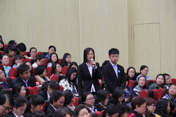 武教授从中国历史和中国文化传播的源起开始,结合经典译例,向同学和老师们展示了中国文化的博大精深。他指出,翻译对实现中国梦具有十分重要的意义,作为外语学习者,“谙熟西学是本分,兼通国学才是超越”。他鼓励同学们潜心学习中国古典文化,为传播中国文化做好扎实准备。讲座期间,武教授引经据典,与同学们热烈互动交流,博得同学和老师的阵阵掌声。