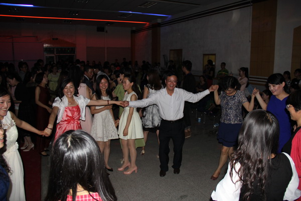2015 年5月26日晚7:00,一场主题为“Auld Lang Syne”的毕业舞会在公司老员工活动中心多功能厅202室举行。学院领导、各系系主任、毕业班班主任、任课老师及全体毕业生300余人参加了本场舞会。舞会由2011级翻译2班毕业生李汶林同学主持。