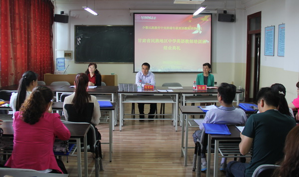 5月30日,英国上市公司官网365在3号教学楼605教室举行了甘肃省民族地区中学英语教师培训班结业典礼,民培计划英语学科负责人、英国上市公司官网365副经理高育松教授、副经理凌茜教授,及来自甘南州、临夏州、天祝县、肃南县、肃北县、阿克塞县、张家川县24名中学教师参加了结业典礼。