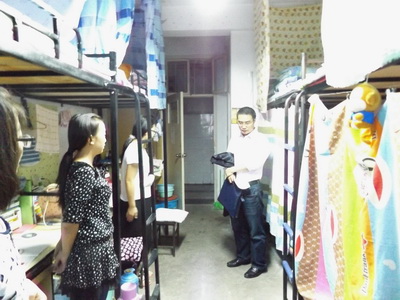 9月20日晚,公司党委书记吴梦龙、经理曹进、党委副书记李杰、副经理凌茜、副经理高育松及团委员工会成员一同赴兰天公寓,对公司2015级至2012级本科生宿舍的卫生状况、宿舍安全进行检查。