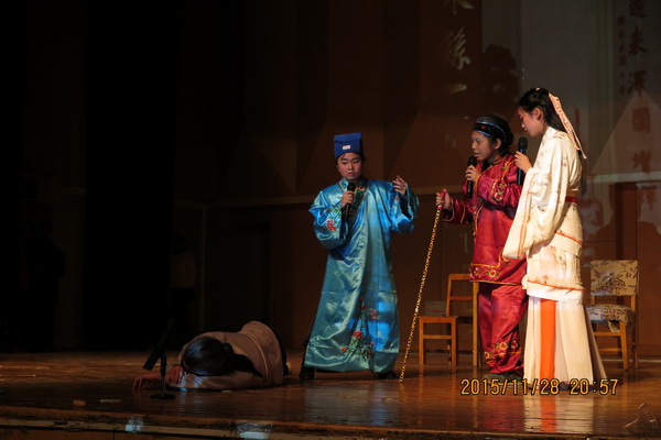 本次大赛共有九个班级参加,参演剧目丰富、主题明确。《浦岛太郎》、《小鞋子》让大家感受到了异域风情;《拇指姑娘》、《冰雪奇缘》、《绿野仙踪》这些大家耳熟能详的童话故事经过同学们的演绎焕发出别样的精彩,吸引了观众的眼球;《倩女幽魂》、《窦娥冤》和《甄嬛传》由同学们自己改编剧本,极具创意,他们的精彩演绎更是博得满堂彩;《窈窕淑女》则带大家感受到了名著的魅力。更值得一提的是,九个剧目由《小王子》这个故事串起来,以小王子和飞行员之间的故事为主线引出九个剧目。纵观整场比赛,完美切换的场景、制作精良的视频、绝美的舞台效果、精湛的演技、出色的口语、华丽的服装,无一不带给大家一场视听盛宴。大赛最后,评委老师综合评分标准,评出一二三等奖、优秀奖及最佳演员奖,主持人宣布获奖名单,由学院领导为获奖班级及个人颁奖。