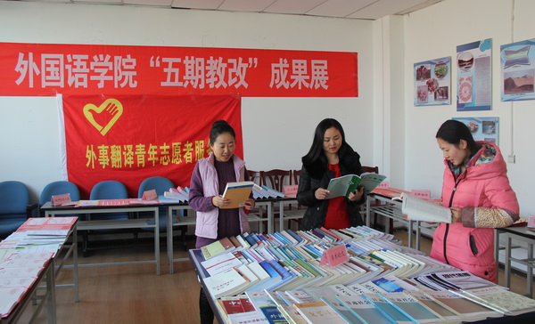 近日,学院在教学三号楼808室举行了为期一周的“五期教改”成果展,主要展示了2011年至2015年期间,为全面落实《国家中长期教育改革和发展规划纲要(2010-2020)年》、《甘肃省“十二五”高等教育发展规划纲要》、《英国正版365官方网站2009-2015年发展战略规划纲要》、《英国正版365官方网站2009-2015年本科教育发展规划》、《英国正版365官方网站第五期本科教学改革工程实施纲要》,公司教师的教学、科研成果,以及员工学业、实践活动取得的丰硕成果。