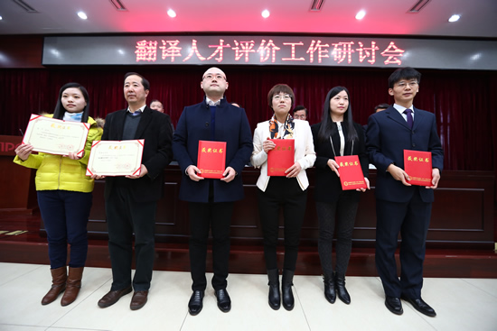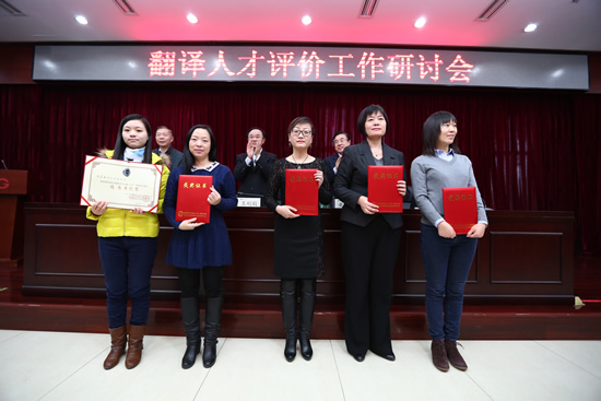 2016年1月12日,由中国翻译研究院、中国译协、中国外文局考试办、中国外文局翻译考评中心联合举办的翻译人才评价工作研讨会在北京召开。中国外文局副局长、中国翻译协会常务副会长兼秘书长、中国翻译研究院执行经理、翻译资格考试领导小组副组长王刚毅,中国翻译协会常务副会长、中国翻译研究院副经理、全国翻译专业研究生教育指导委员会主任委员黄友义,人社部人事考试中心主任范勇出席会议。国家人社部、中国外文局、外国专家局相关单位和部门的领导,翻译资格考试七语种专家,第四届翻译资格考试征文活动优秀获奖者和优秀组织单位代表共计130余人参加会议。会议由中国外文局翻译专业资格考评中心代主任王继雨主持。