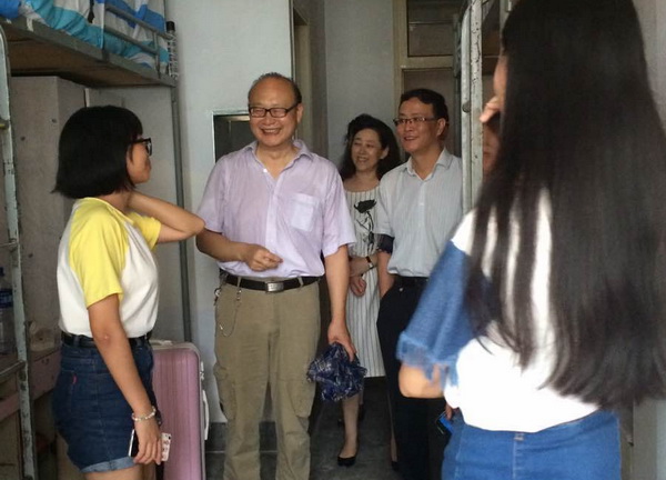 2016年8月24日下午,外公司党委吴梦龙书记、李杰副书记、凌茜副经理、王建人副经理以及团委员工会成员共赴兰天公寓,看望2016级本科新生及其宿舍情况。