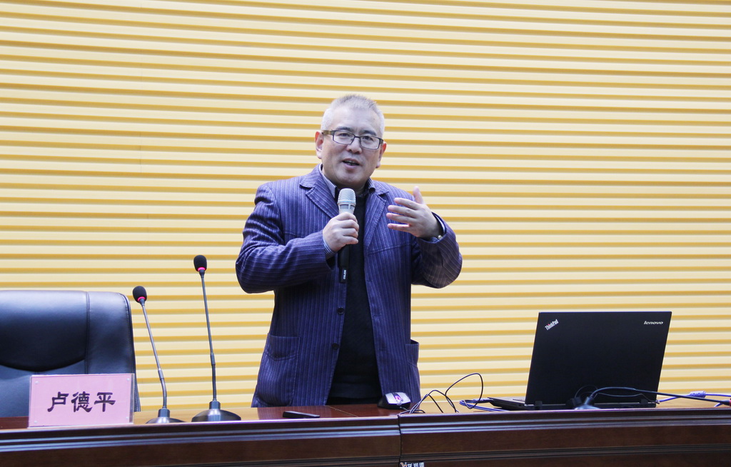 报告会上,卢德平教授从真相与本质、方式和路径、内在张力及其消解等方面对汉语国际传播展开了论述,并就面向“一带一路”汉语传播中的推拉因素进行了分析。卢教授先从符号学角度结合具体、生动的生活实例地提出了当前汉语国际传播运动中存在的汉语悬置问题,然后辨析了“扩散”和“交际”两种汉语传播方式的区别,指出语言传播的最高目标和最终形态是从“语言扩散”推进到“语言交际”,当前促进汉语传播必须辨别宏观、中观和微观三个层面上的推拉因素,将汉语传播中的推力因素转化为对象国的拉力因素。整场报告中,卢教授始终以跨学科的眼光审视当前汉语国际传播中的问题,不仅揭示了问题的真相,并且提出了解决问题的突破口和可能途径,从理论上提升了师生对汉语国际传播的认识。