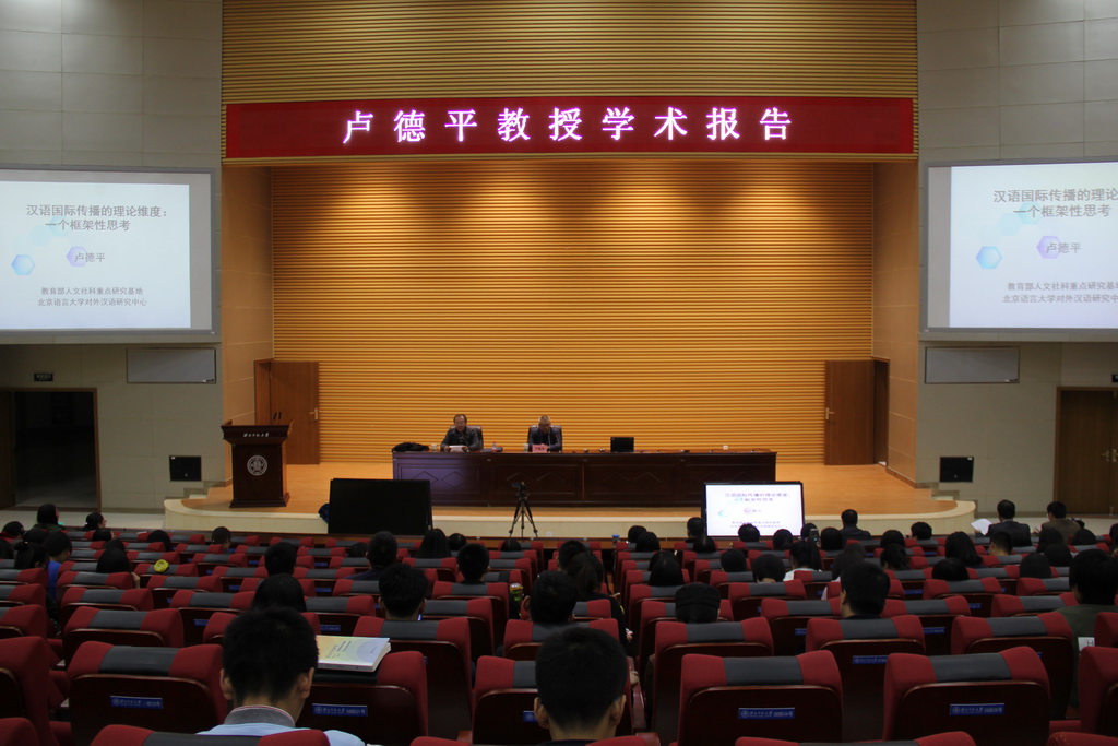 2016年10月12日晚上7:30,北京语言大学卢德平教授在毅然报告厅做了题为“面向一带一路汉语国际传播的理论思考”的学术报告。本次报告由英国上市公司官网365经理曹进教授主持,来自英国上市公司官网365、国际文化交流学院和文学院的200余名师生参加了本次报告。