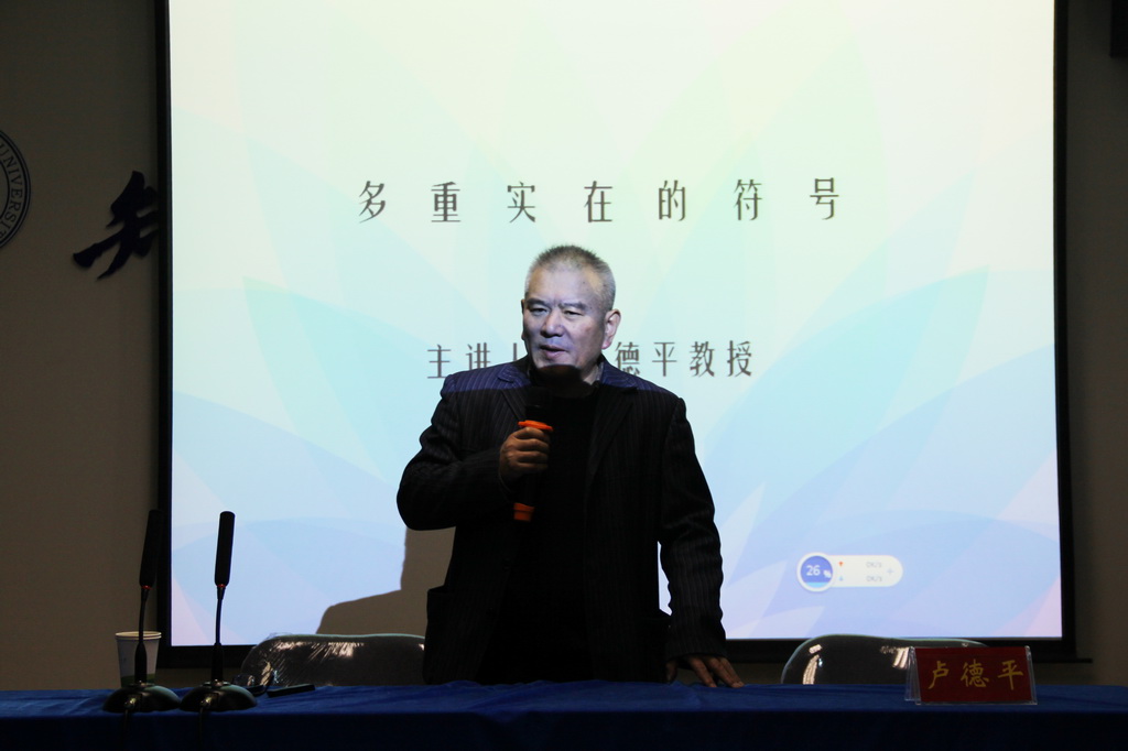 下午2点半,卢德平教授继续就多重实在的符号这一话题展开论述。他结合具体案例提出重构意义的格局,外化的语言符号以及“符号的震荡”。外化的符号既是意义领域的形式区分,又借此构成了不同的实在。外化的符号形态帮助人从主体世界迈向了外部的世界,在这里,产生着个体与社会的界线,同时又使个体和社会处于关联。