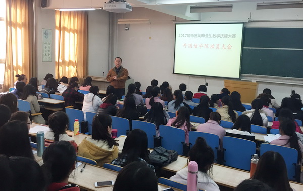 会上,英语系负责人宣读了学校“关于举办2017届师范类毕业生教学技能大赛的通知”(西师办发[2016]34号)。经理曹进教授进行了赛前动员,鼓励同学们积极参赛,继续争创佳绩。英语系负责人就院级比赛的各项流程作了具体的安排部署。