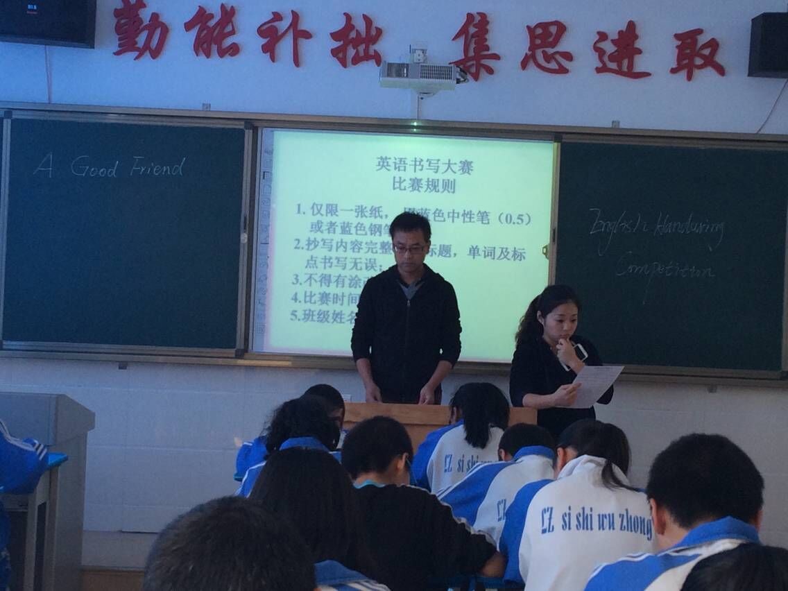 为丰富孩子们的学习生活,我们九名研究生设计了一系列活动。包括针对七八年级员工的“英语书写大赛”、“英语才艺大比拼”,还有针对九年级员工的“我是单词王”。活动前后持续近三周,受到了广大同学的积极配合和喜爱,活动成效圆满。