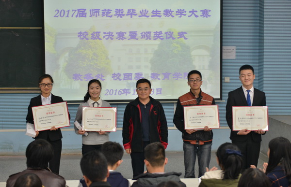 12月3日,公司2017届师范类毕业生教学技能大赛决赛在教学10号楼如期举行。在此之前,17个拥有师范专业的学院经过各学院院级初赛、学校校级复赛两轮激烈角逐,共有包括公司2013级英语专业董连棋(校级复赛文科组第一名)、马楠(校级复赛文科组第五名)在内的14位选手脱颖而出,获得决赛资格。