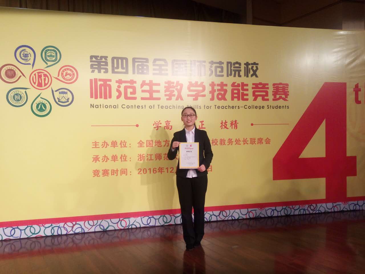12月2日至3日,第四届全国师范生教学技能竞赛在浙江师范大学举行。全国101所师范院校选送的374名选手分别参加了语文、数学、英语、物理、化学、生物等6个学科组的比赛。公司2013级英语专业赵燕同学、指导教师王灏最终获得英语组三等奖。