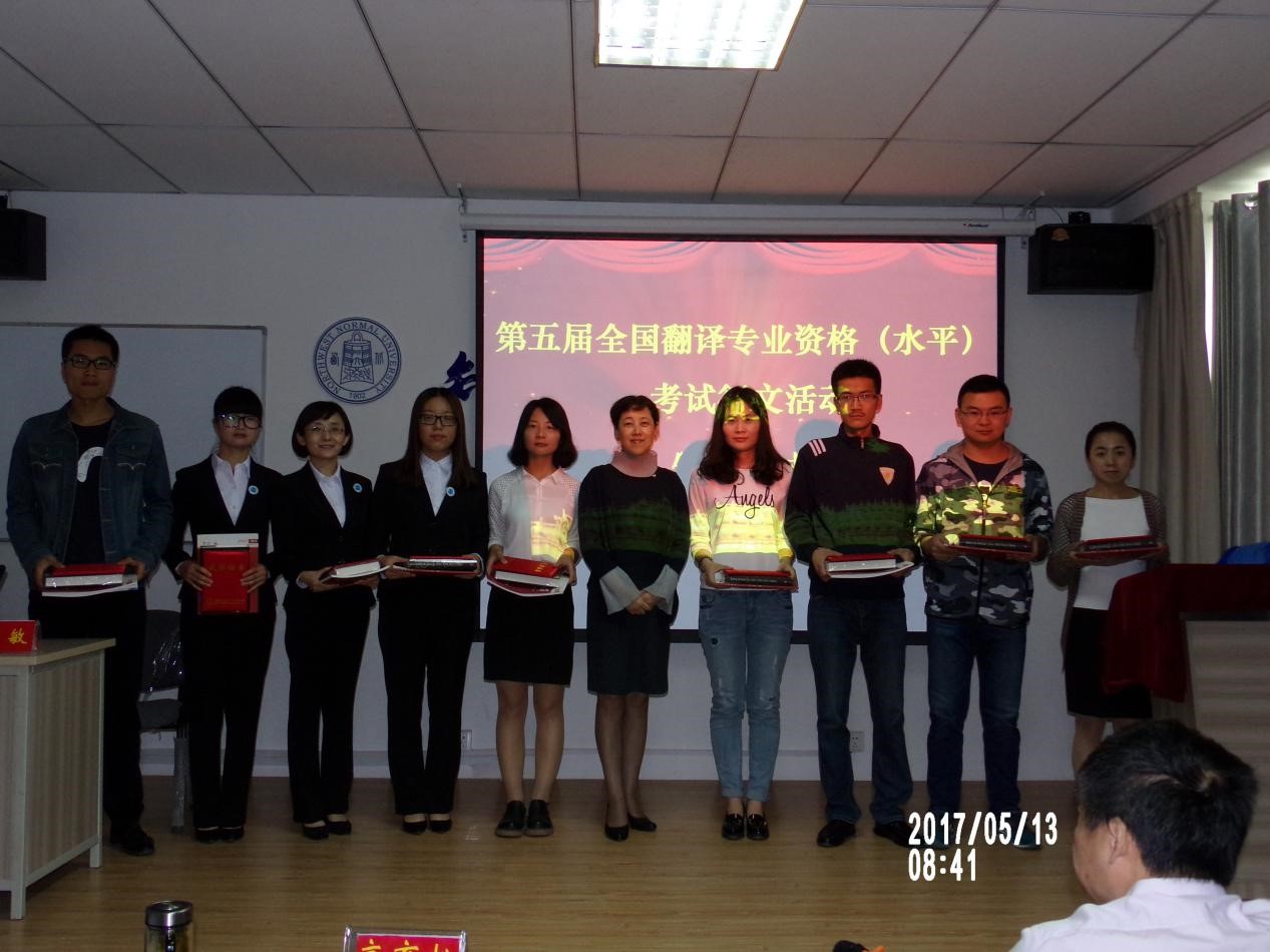 其次,由凌茜副经理为“第五届全国翻译专业资格(水平)考试征文活动”三等奖获得者赵勃及纪念奖获得者张潇月等39名同学颁发了荣誉证书及奖品。