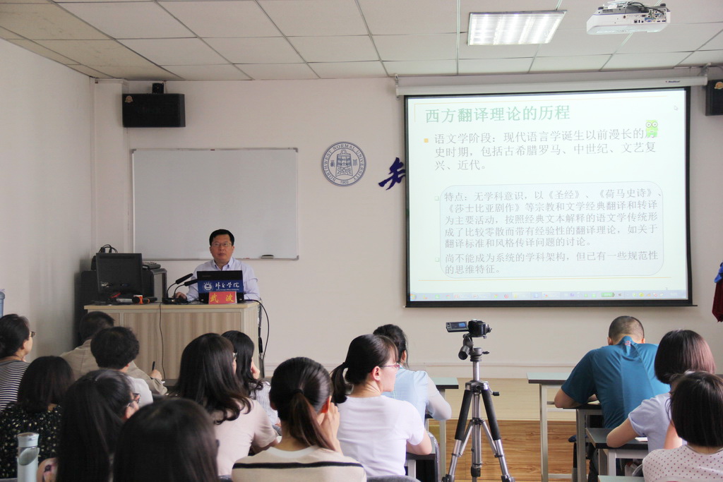 2017年6月2日上午,武波教授为公司师生进行了最后一场讲座,讲座题目为“西方当代翻译理论流派”。公司部分教师、全体翻译硕士聆听了本场报告。