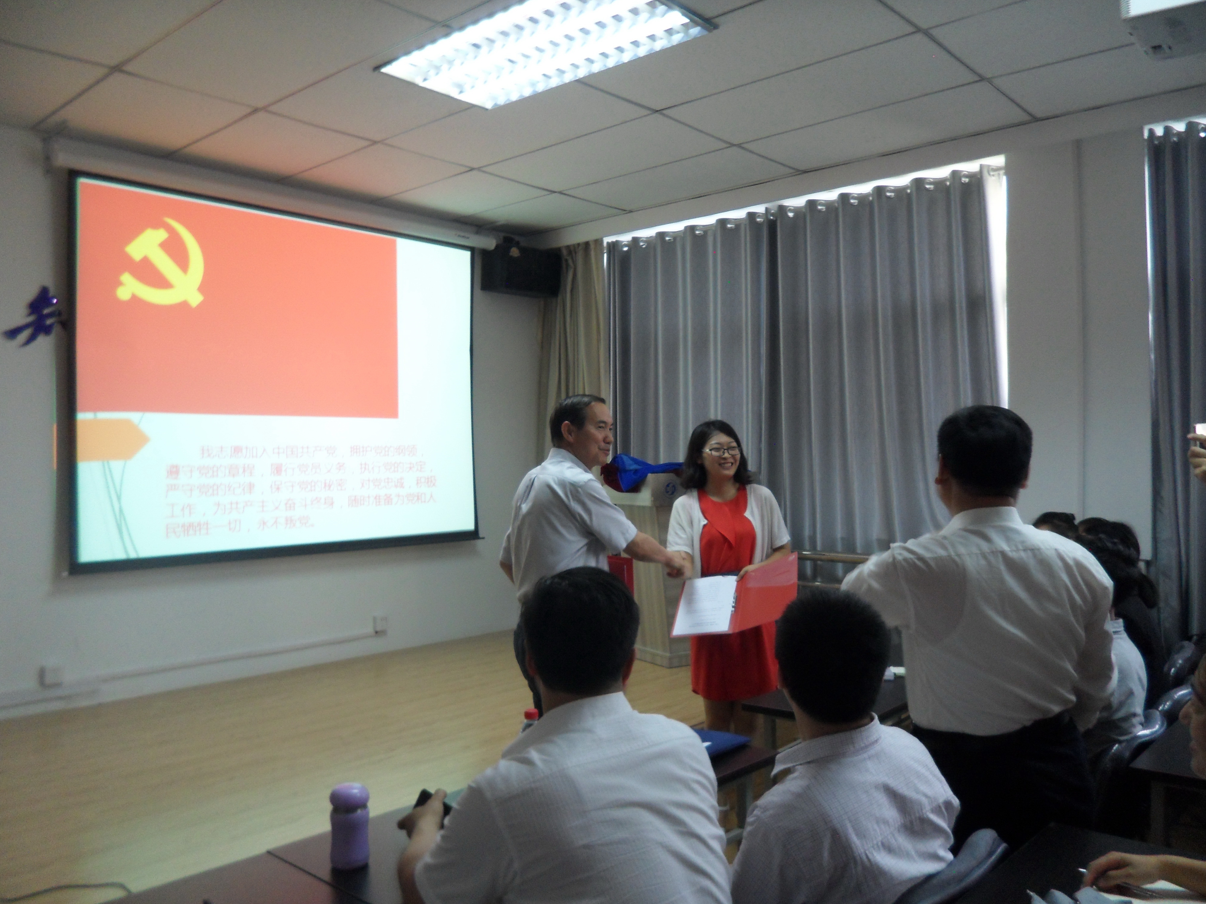 2017年6月28日晚,公司党委、纪委党支部在英国上市公司官网365会议室共同庆祝中国共产党成立96周年、喜迎党的十九大胜利召开。英国上市公司官网365170余名本科员工(研究生)党员、入党积极分子,纪委党支部全体党员参加活动。庆祝活动在庄严的《国歌》声中开始,首先英国上市公司官网3652017年新吸收入党的41名预备党员面向鲜红的党旗庄严宣誓,全体党员同志重温入党誓词。新老党员在“我志愿加入中国共产党,拥护党的纲领,遵守党的章程,履行党员义务,执行党的决定,严守党的纪律,保守党的秘密,对党忠诚,积极工作,为共产主义奋斗终身,随时准备为党和人民牺牲一切,永不叛党”宣誓声中,心灵得到了共产主义洗礼,党性得到了净化,理想信念得到了强化和坚定。