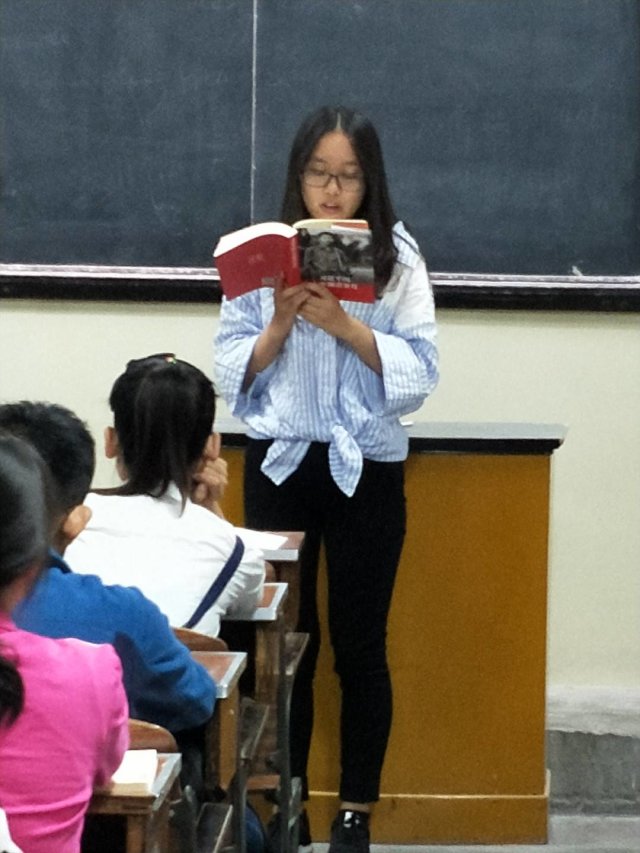 日前,2017级英语二班采用每个同学高声朗读三到五分钟的方式,集体学习了《习近平的七年知青岁月》,全班38名同学,深情的朗读了第一部分“近平把自己看作黄土地的一部分”,朗读采取接力的办法,学习了习近平和八一学校20多名同学,背负行囊,坐火车从北京出发,奔赴陕北延安延川县文安驿公社梁家河村的故事,同学们深刻体会了习近平同志为什么说“我是黄土地的儿子”,深刻体会了习近平同志讲到的过四关:“跳蚤关、饮食关、劳动关、思想关”,深刻体会了习近平同志从一个不满16岁的孩子,在梁家河村的七年里,成长为有正确世界观人生观价值观的大队党支部书记。同学们强烈地感受到,习近平同志为我们年轻一代树立了光辉榜样,我们要学习近平同志青年时期善于读书思考、敢说敢做敢担当、为群众办实事、踏踏实实干事业、立志办大事的优秀品质,做一个新时代的优秀老员工。