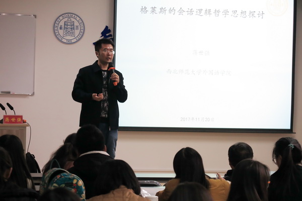 11月20日下午16:30-17:40,英国正版365官方网站大学英国上市公司官网365蒋世强副教授在806教室就格莱斯的会话逻辑在学院做报告。学院老师和2017级研究生等一百多名师生共同聆听了这次讲座。