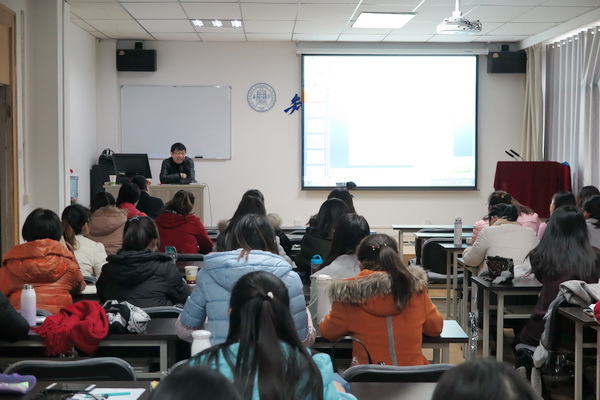 2017年12月1日,应学院邀请,华东师范大学梁超群教授在教学3号楼806教室做了学术讲座,讲座题目为:“《等待戈多》之不可靠的剧作家”。本次讲座由高育松副经理主持,学院200多名师生共同聆听了此次报告。