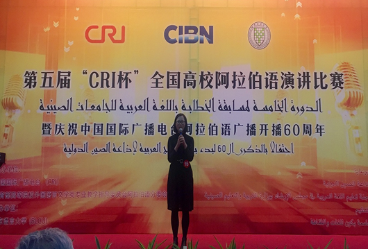 2017年11月23日由中国国际广播电台主办的第五届“CRI杯”全国高校阿拉伯语演讲比赛在北京语言大学圆满落幕。经公司阿拉伯语专业选拔并推荐参赛的黎甜(2016级)同学在比赛中获得了低年级组优胜奖的佳绩。