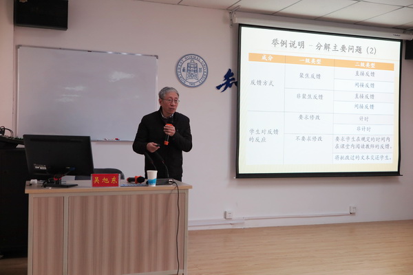 讲座开始,吴旭东教授从课题的主要来源、课题论证的步骤、例证发现不足的过程三个方面给大家做了简单的概述。随后,吴旭东教授展开了今天的主题,他详细地介绍了选题论证的六个步骤。其次,吴旭东教授阐述了如何寻找课题的“不足”和“空白”,系统论证了改善课题“不足”和填补“空白”的必要性和逻辑方法。另外,为便于师生理解,吴旭东教授又以外语写作中语误“修正性”反馈方式的争议为实例,展开了生动的课题论证方法分析。最后,吴旭东教授用诙谐幽默的语言强调了遵循选题论证步骤的诸多益处。
