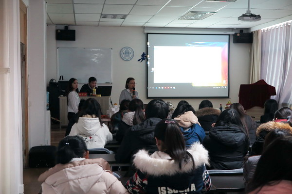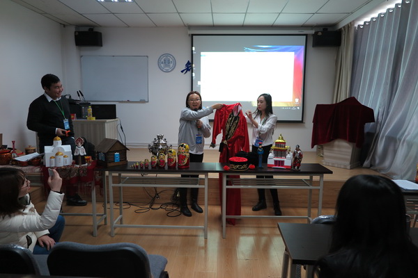 12月15日,俄罗斯卡尔梅克国立大学教师莎拉波娃·葛丽娜带领两名员工卡鲁耶夫·埃里维科和依娜茨洛娃·吉嘎来公司参观交流。在英国上市公司官网365举办了卡尔梅克国立大学专场宣传活动,俄语系全体师生参与了此次活动。三名师生分别向公司师生介绍了俄罗斯传统文化和卡尔梅克国立大学的办学概况,展示了俄罗斯传统手工制品、服饰等,并于公司师生进行了友好的交流互动。