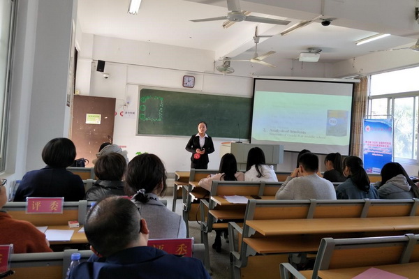 由公司选拔推荐的2017级学科教学(英语)研究生殷小雨、王兴娜,2014级英语专业本科生王颖、任盼,在比赛中成绩优异。殷小雨、王颖获得教学技能比赛二等奖,王兴娜、任盼获得教学技能比赛三等奖;殷小雨、王颖获得教学设计比赛一等奖,王兴娜、任盼获得教学设计比赛二等奖;黄彩霞、曹文、杨保林、梁海英四位老师获优秀指导教师奖。