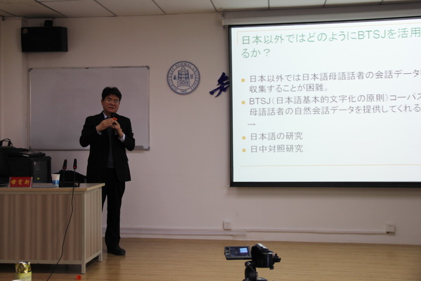 基于自然会话语料库(BTS)的语言对比研究作为语料库研究的前沿受到关注。讲座中,毋育新教授就日语语料库BTSJ、以及为了进行汉日对比研究而模仿BTSJ构建的汉语会话语料库BTSC进行了深入浅出的说明,分享了他利用两种语料库针对汉日语言中的关于“请求表达”所取得的研究成果,分析了两种语言在“基本状态”上的差异,并就如何用日语更好地展开会话提出了贴近本科教学的建议。通过聆听讲座与毋老师的热烈互动,同学们激发出努力学习,探索学科前沿的兴趣与信心。