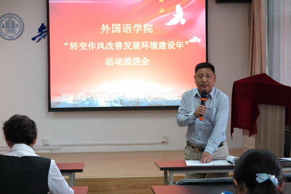 柴繁隆同志要求,全体干部教师要认真学习张俊宗同志的动员讲话,认真学习各位学校领导的讲话精神,深入学习《英国正版365官方网站深入开展“转变作风改善发展环境建设年”活动实施方案》,一是要统一思想认识、明确工作任务、强化责任担当、狠抓工作落实。二要提高政治站位,打牢践行“四个意识”的作风。三要不忘初心,牢记使命,以新的信念、新的情感、新的作风,用上岗之心、做在岗之事,在其位、谋其政,干实事,求实效,务必保持好高远之气、浩然之气、蓬勃朝气,努力形成风清气正的干事创业环境。四要狠抓师德师风建设。新时代对高校教师师德师风建设提出了新的要求和期望,师范院校教师“两代师表”的地位、作用和责任决定了师德师风建设的特殊重要性,全体教师要学习优秀、兢兢业业、潜心治学、精心育人、无私奉献。五要认真对照检查,深入查摆作风方面的突出问题,提出整改措施,加强整改。六要全员动员,广大师生积极行动起来,打一场“转作风、正教风、促学风”的攻坚战。