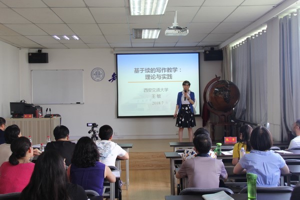 2018年7月19日下午,应学院邀请,西安交通大学英国上市公司官网365副经理、博士生导师王敏教授在教学三号楼806为与会师生作了此次语言学暑期学校的第二场专题讲座,题为“基于续的写作教学:理论与实践”,本次讲座由副经理高育松教授主持,与会师生共计80余人。