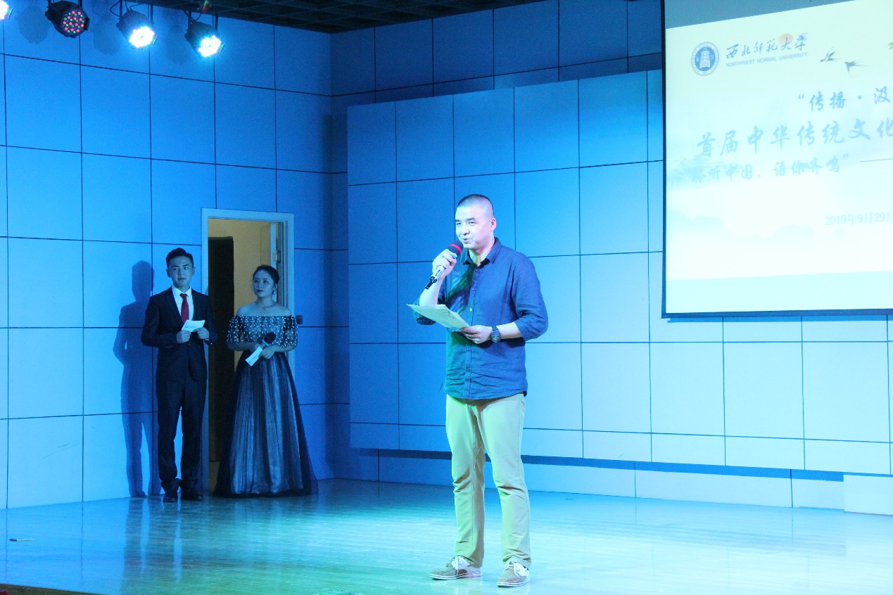 比赛结束后,英语系副主任王国礼老师从选手语言表达、表演形式、个人情感、仪态风度等多方面进行了点评,对比赛提出了肯定,也对选手提出了更高的期望。经理曹进对此次活动进行了总结,他表示文化传播是全校师生共同肩负的责任与使命,是“文化自信”的有效途径,同学们应该同学习、同感知、同进取,提升外语水平的同时,感受中华传统文化的精髓。倡议同学们要讲好中国故事、传递中国声音,不断把中国特色社会主义伟大事业推向前进,实现中华民族的伟大复兴的中国梦!