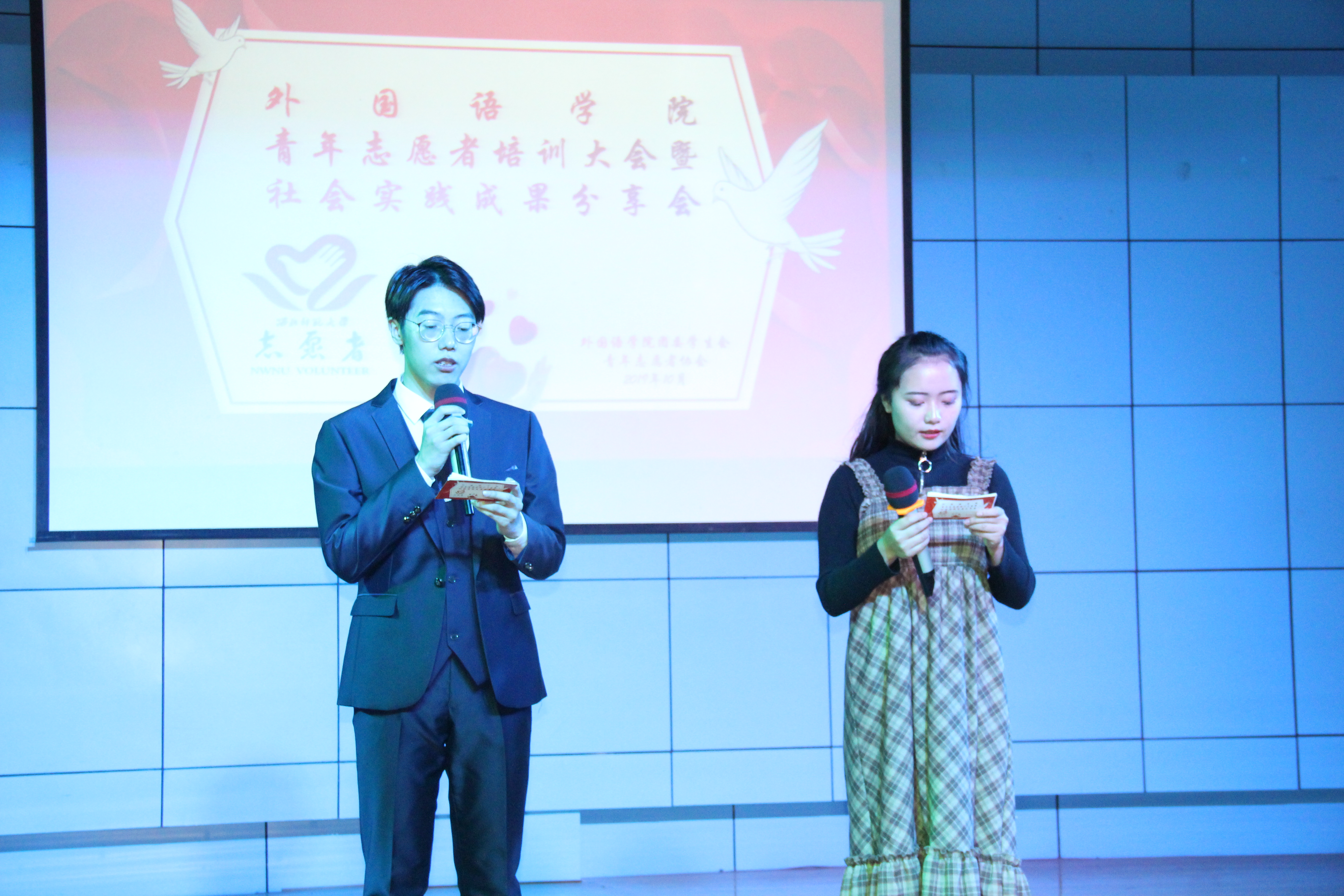 在接下来的时间里,各志愿者、实践团队代表依次分享她们在实践活动中的感悟与收获。这其中,既有“一会一节”以“文旅繁荣丝路,美丽战胜贫困”的智慧,也有2019国际田联跑路会议“路跑运动助推城市文明”的灵动。无论是西部扶贫支教一线,还是城市职场体验,红豆草实践队员传承20年的精神血脉,不畏艰苦、向阳而生。铭记终身学习,坚守初心的殷殷嘱托,在礼县、宕昌、新东方兰州学校、英可瑞学校的实践中,将支教和职场生活的感动融入对西部教育事业的耕耘和努力中。最后,新生代表就志愿者培训和实践成果分享进行发言,发出青年一同积极参与志愿服务,在充满爱与正能量,担当责任与义务的过程中,携手奔向更好自己的号召。