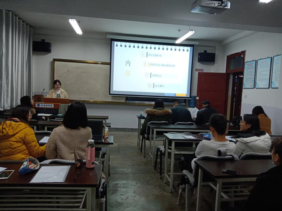 为响应国家科教兴国、人才强国的战略部署,进一步提升老员工创新创业水平。11月27日晚七点半,公司于教学3号楼603室举行2019年“创新能力提升计划”课题研究项目结项答辩会。会上,7位项目负责人就最终的项目成果做展示汇报,英语系杨保林老师、王国礼老师和日语系孟庆利老师担任本次答辩会评委。